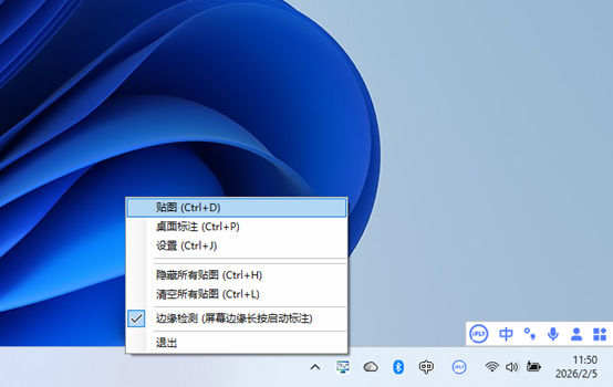 • 贴图:启动区域截屏贴图模式;
